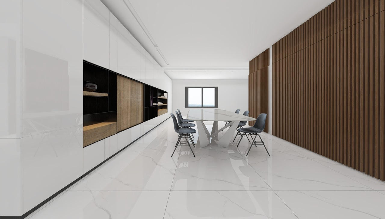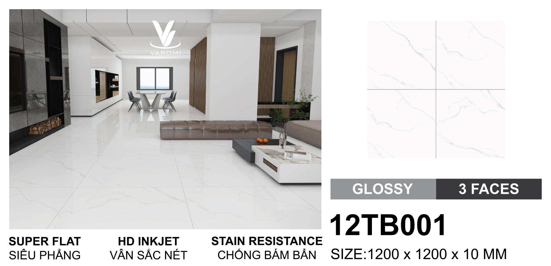 Có bao giờ bạn bước vào một căn nhà mà ánh sáng phản chiếu trên sàn gạch sáng bóng, tạo nên cảm giác rộng mở và tinh khiết đến mức bạn chỉ muốn dừng lại thật lâu để chiêm ngưỡng? Đó chính là sức mạnh của gạch khổ lớn 12TB001 mà Varomi mang đến – nơi mỗi chi tiết nhỏ đều góp phần tạo nên một không gian sống đẳng cấp.